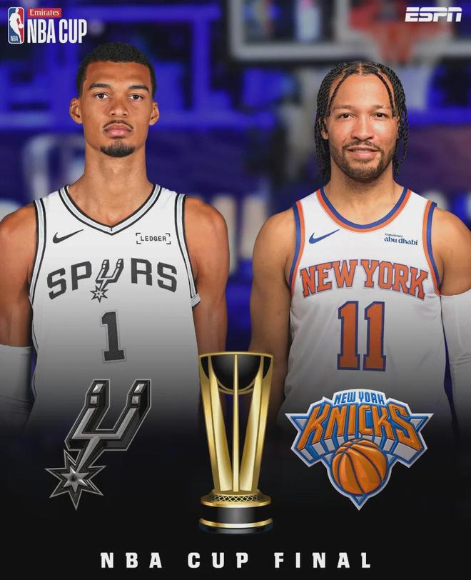 马刺则是到了想出成绩的赛季,随着文班亚马伤愈复出,他们在半决赛力克全阵容雷霆,送给对手赛季第二败,打进了NBA杯赛的决赛。