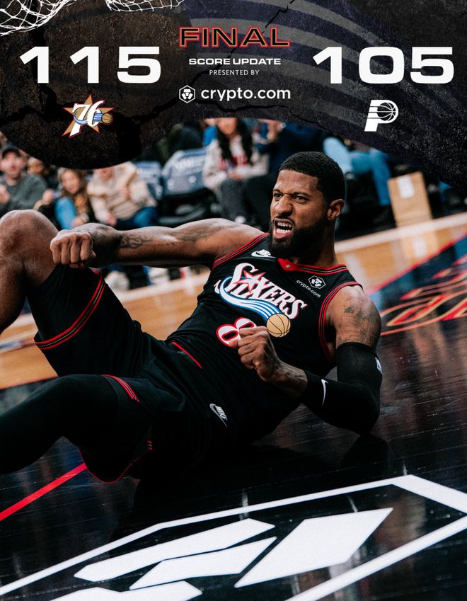 76人115-105步行者,恩比德39+9,西亚卡姆20+5
